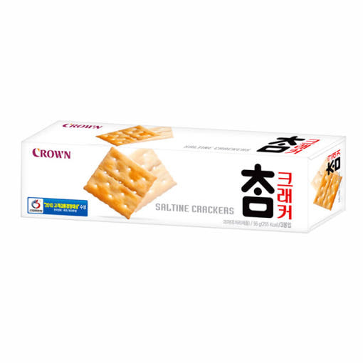 Korean: 크라운 참 크래커 56gChinese: 皇冠苏打饼干 56gJapanese: クラウン ソルティンクラッカー 56gEnglish: CROWN Saltine Crackers – Korean Light & Crispy Snack 56g Quick H...