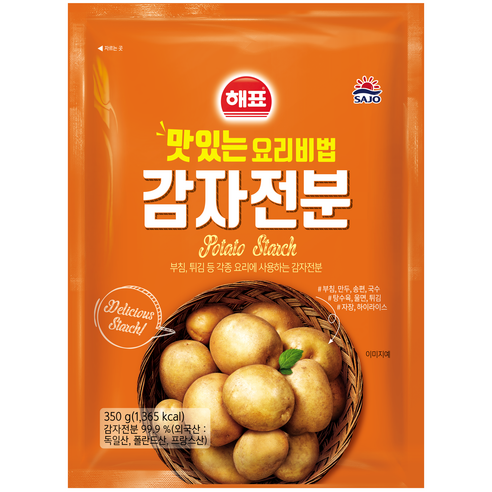 Korean: 해표 감자맛전분 350gChinese: 四朝海标 马铃薯淀粉 350gJapanese: サジョヘピョ ポテトスターチ 350gEnglish: Haepyo Potato Starch 350g Quick HighlightPremium potato starch ...