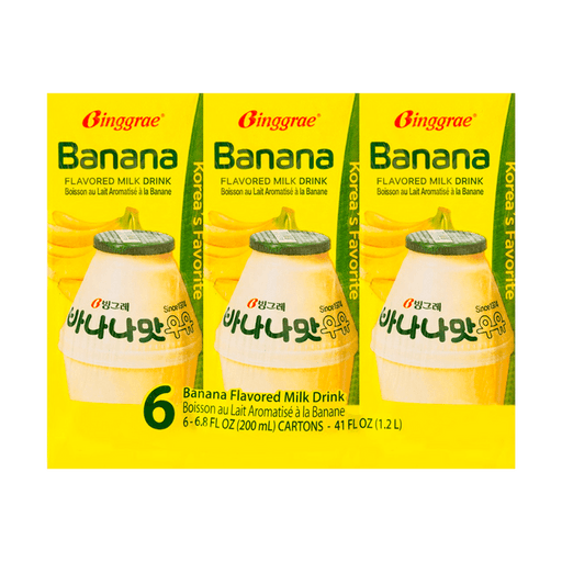View full detailsBINGGRAE Banana Flavored Milk Drink 200ml × 6 Pack – Korean Sweet & Creamy Beverage