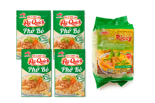 🔥 Time Deal: 40% OFF 🔥 Ajinomoto Aji-Quick Phở Bò Seasoning Mix 57g × 4 + ACECOOK Oh! Ricey Rice Noodles 500g ⚠️ Purchase Limit: Max 1 set per per...