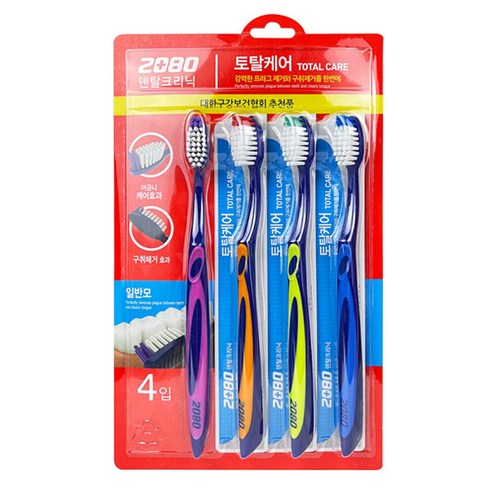 2080 토탈케어 일반모 칫솔 4입2080 全面护理普通毛牙刷 4入2080 トータルケア 歯ブラシ 4本Aekyung 2080 Total Care Toothbrush 4pcs – Comprehensive Cleaning & Oral Hygiene Quick Hi...