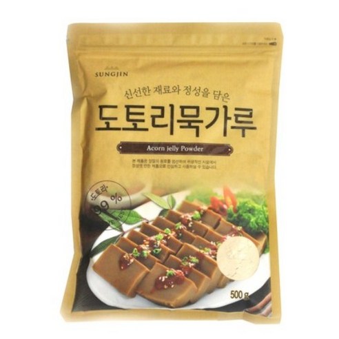 SUNGJIN Acorn Jelly Powder 500g Quick Highlight 99.9% 순수 도토리전분으로 만든 프리미엄 도토리묵가루입니다. Description 성진 도토리묵가루는 고급 도토리전분으로 만들어 고소하고 부드러운 식감의 도토리묵을 손쉽게 만...