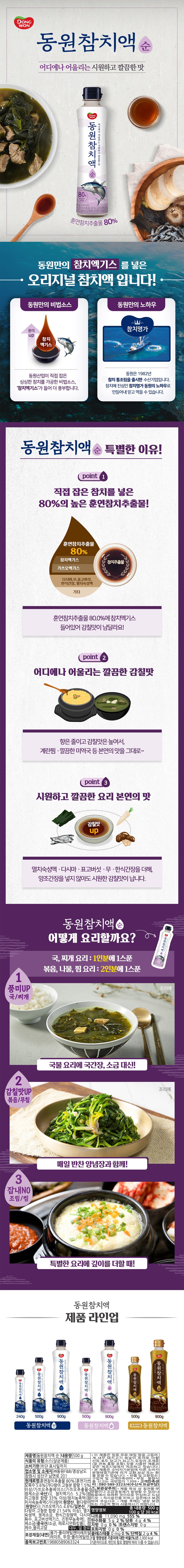 80% 참치추출액으로 깔끔하고 깊은 감칠맛을 살린 요리용 액상조미료.