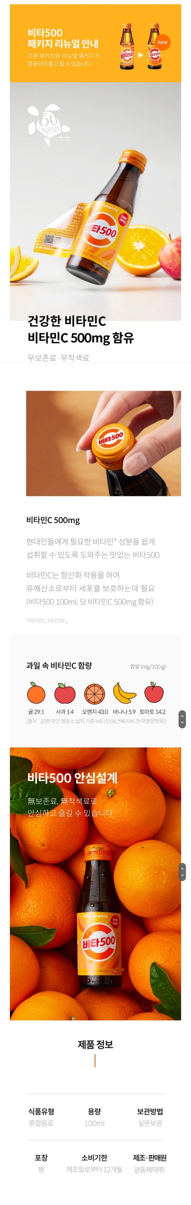 100ml 한 병에 비타민C 500mg을 담은 대표적인 건강 드링크.