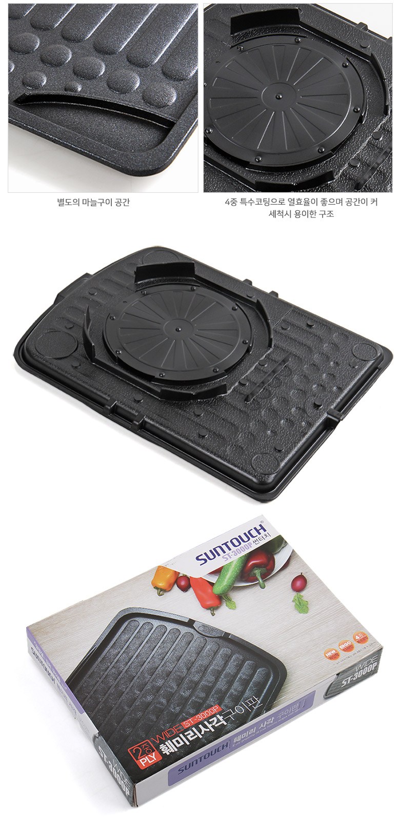 Korean: 썬터치 불판 훼밀리 사각 ST-3000P