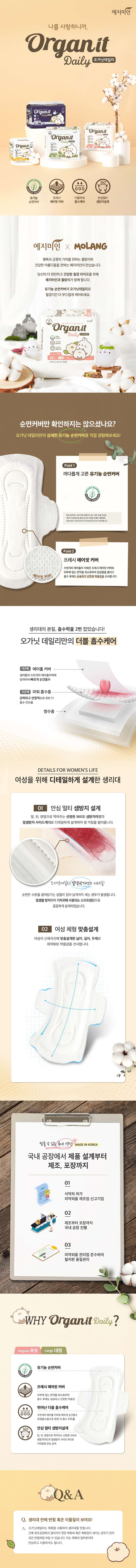 Korean: 생리대 예지미인 오가닛 데일리 (중형 16P / 대형 14P)