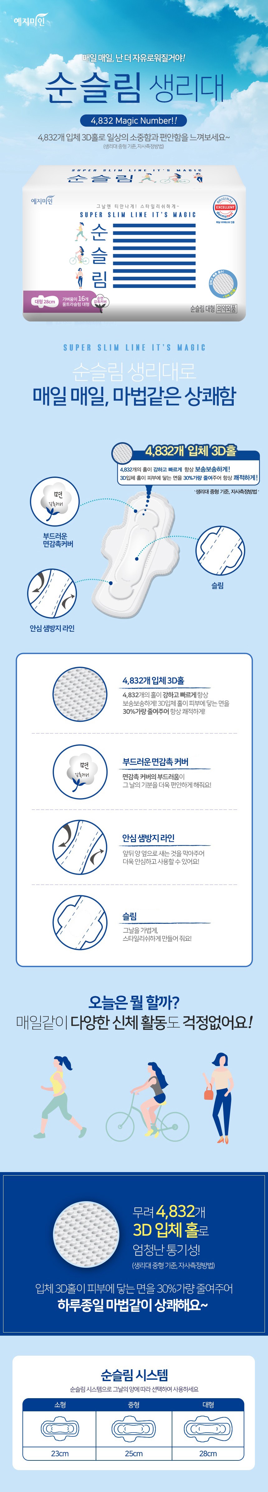 Korean: 생리대 예지미인 순슬림 (중형 18P / 대형 16P)