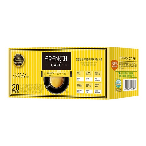 NY French Cafe Coffee Mix with Stevia 20T Quick Highlight 使用甜菊糖代替白砂糖的韩国低卡速溶咖啡,口感柔和顺滑。 Description NY French Cafe 甜菊咖啡混合包提供自然甜味且无负担的咖啡体验。 以甜菊糖取代蔗糖,降...