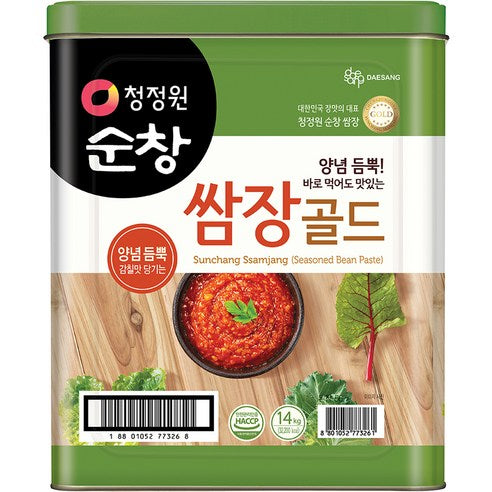 CHUNG JUNG ONE Sunchang Ssamjang Gold Seasoned Soy Bean Paste 14kg – Korean BBQ Essential Quick Highlight 韩国传统拌饭酱(Ssamjang),香浓微甜,大容量14kg,适合餐饮业和烧烤。 ...